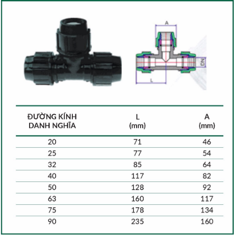 Các kích thước của từng loại ba chạc 90 độ HDPE Stroman