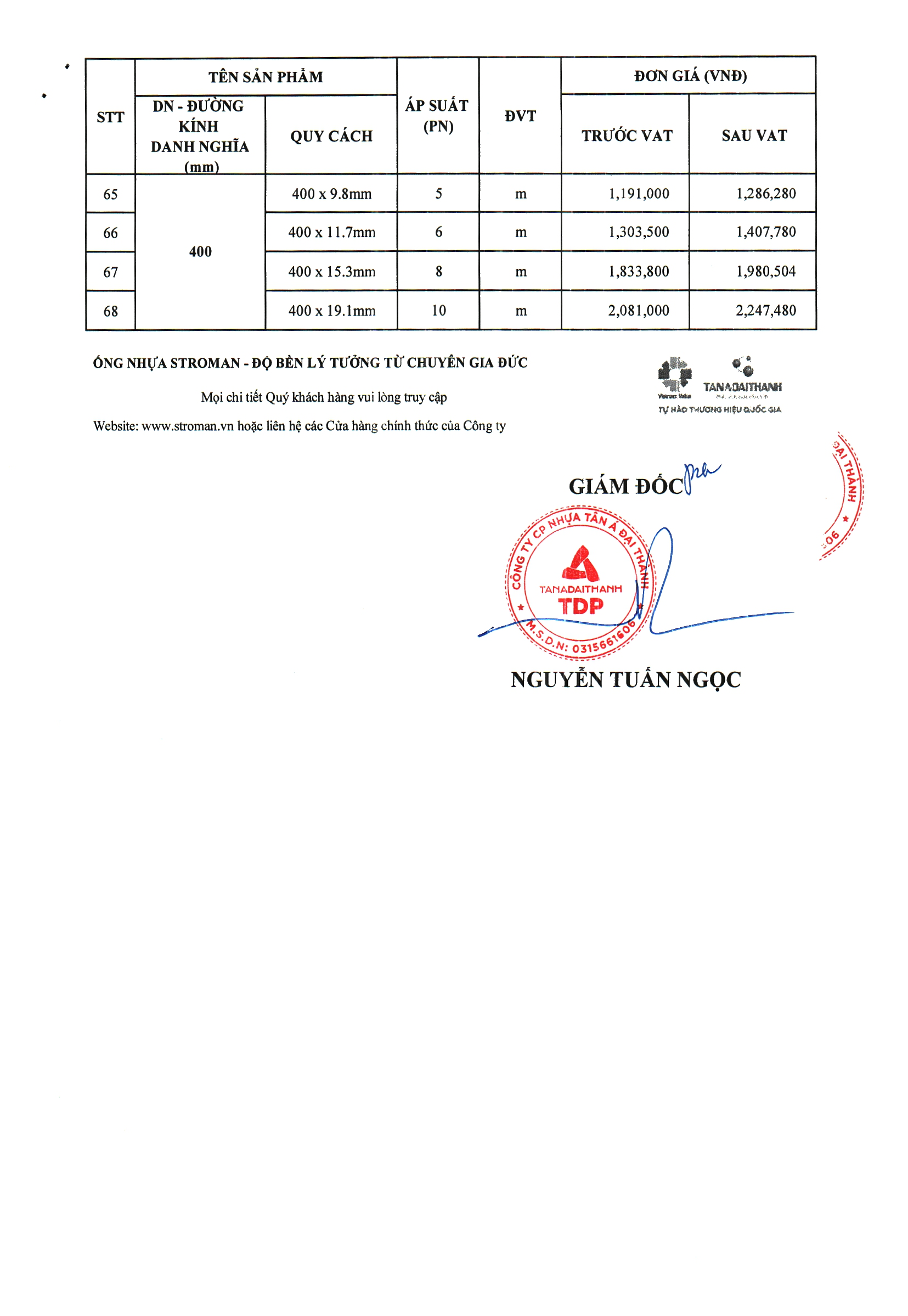 - Cam kết ống nhựa uPVC Stroman chính hãng 100%.