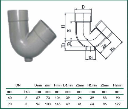 Kích thước thân co chữ S uPVC theo tiêu chuẩn ISO1452-3:2009