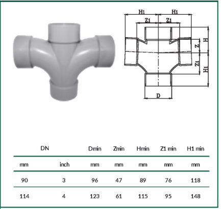 - Dải đường kính của tứ thông uPVC từ 90mm - 114mm