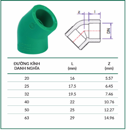 - Chi phí lắp đặt thấp: chếch 45 độ PPR có trọng lượng nhẹ, dễ vận chuyển và dễ lắp đặt giúp giảm chi phí.