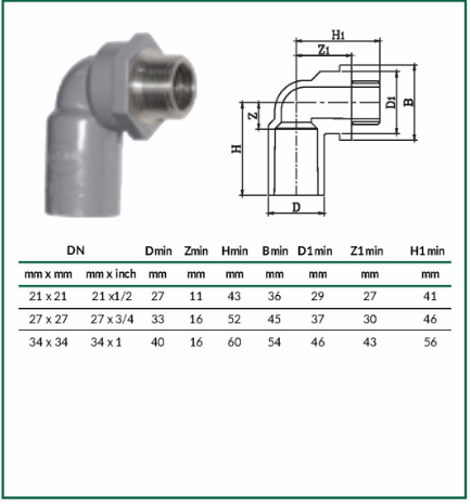 Kích thước co 90 độ ren ngoài nhựa uPVC theo tiêu chuẩn ISO1452-3:2009