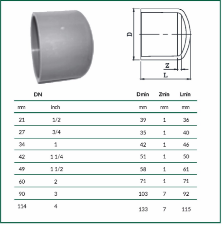 Kích thước nắp bịt ren ngoài uPVC theo tiêu chuẩn ISO1452-3:2009