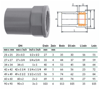 - Chống ăn mòn: Nối ren trong nhựa uPVC không dẫn điện và không bị phản ứng điện hóa bởi acid, kiềm hoặc muối - nguyên nhân gây ăn mòn kim loại.