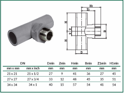 - Dải đường kính của tê ren ngoài nhựa uPVC từ 21mm - 34mm