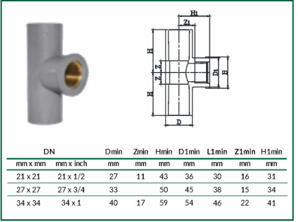 - Dải đường kính của tê ren trong thau uPVC từ 21mm - 34mm